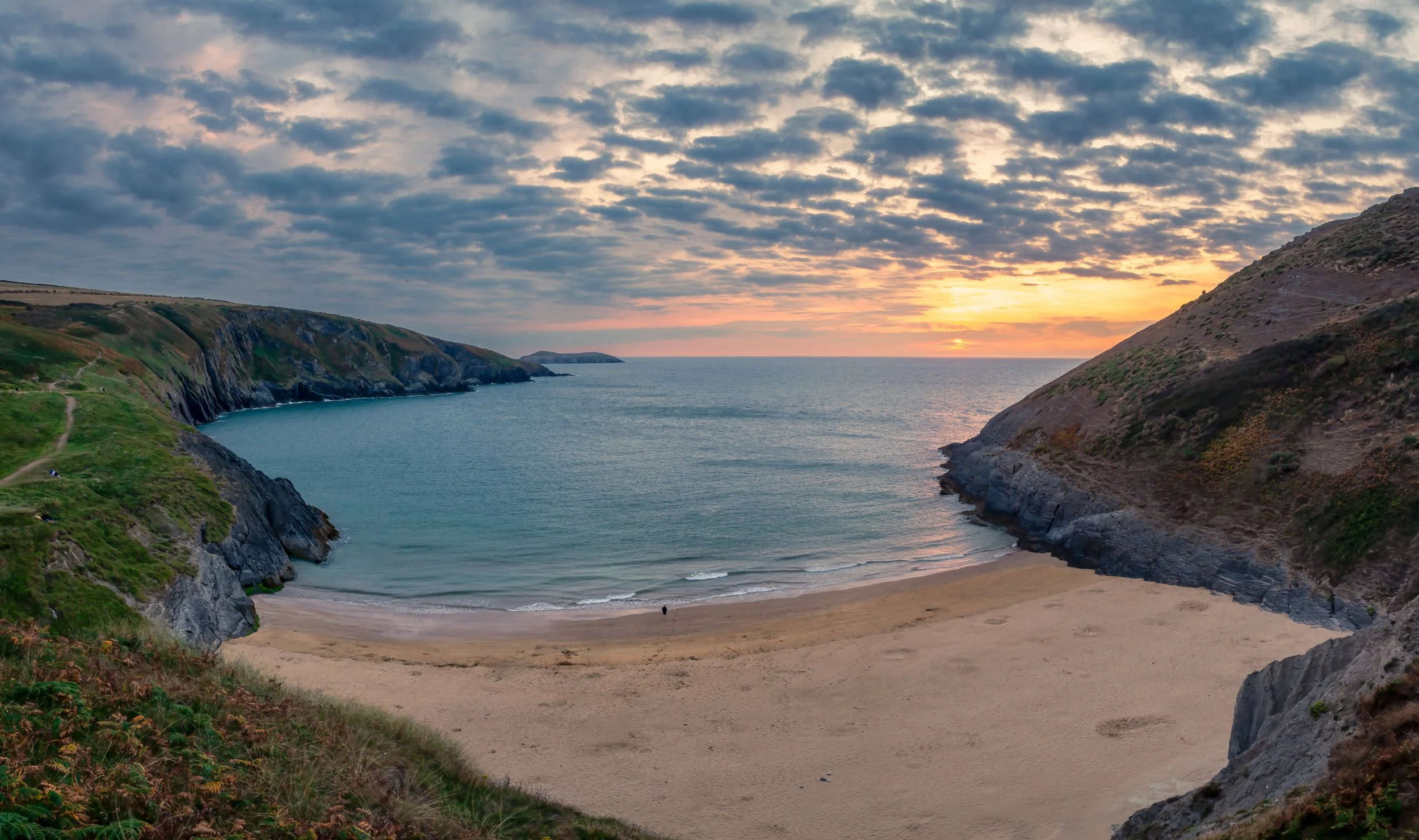 A sunset image of Mwnt and a view that most people would associate with this place. From the same day as the earlier image, Nigel and I returned to the beach for sunset. We had great hopes for the sky to light up in a massive display, but it didn’t quite happen as we’d hoped, and yet I think we got some good images, and the clouds directly above the beach make the image despite not being the gorgeous reds and oranges we had hoped for. You have to be open to unexpected conditions, and at times they yield a better image than what you may have had in your mind’s eye! Certainly, this puts the focus onto the beach and the gentle orange reflections on the water.