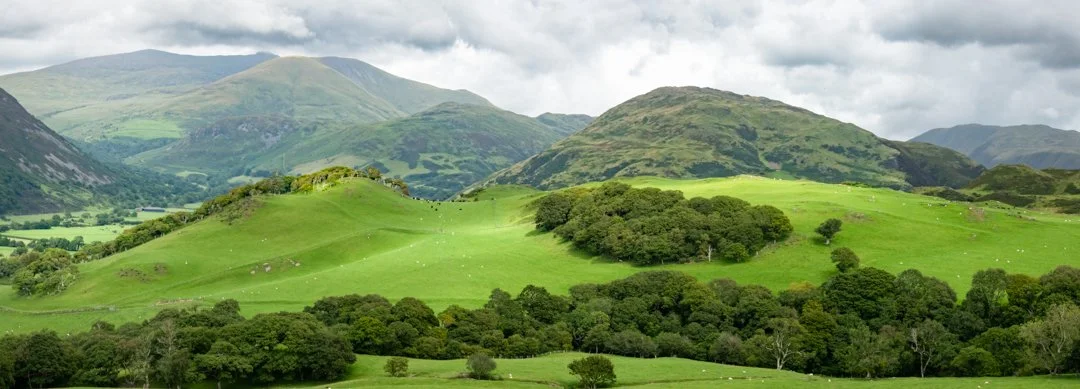 Craig yr Aderyn, or Bird Rock, is a high outcrop looking out over the Dysynni valley near Cadair Idris in Southern Eryri (Snowdonia), home to cormorants and choughs. It’s a good hour’s walk from the road to the summit with spectacular views at all times. The shapes of the hills and mountains behind them, the patterns made by the woodland and green meadows, all of these are rich pickings for anyone with a camera. The day I was there provided ideal conditions with interesting cloud formations and patches of sunlight which appeared and disappeared, illuminating different parts of the hills and distant mountains. This picture, taken about 2/3 of the way up, shows the sunlight lighting up the gorgeous green meadows in a way that picked out its contours perfectly.