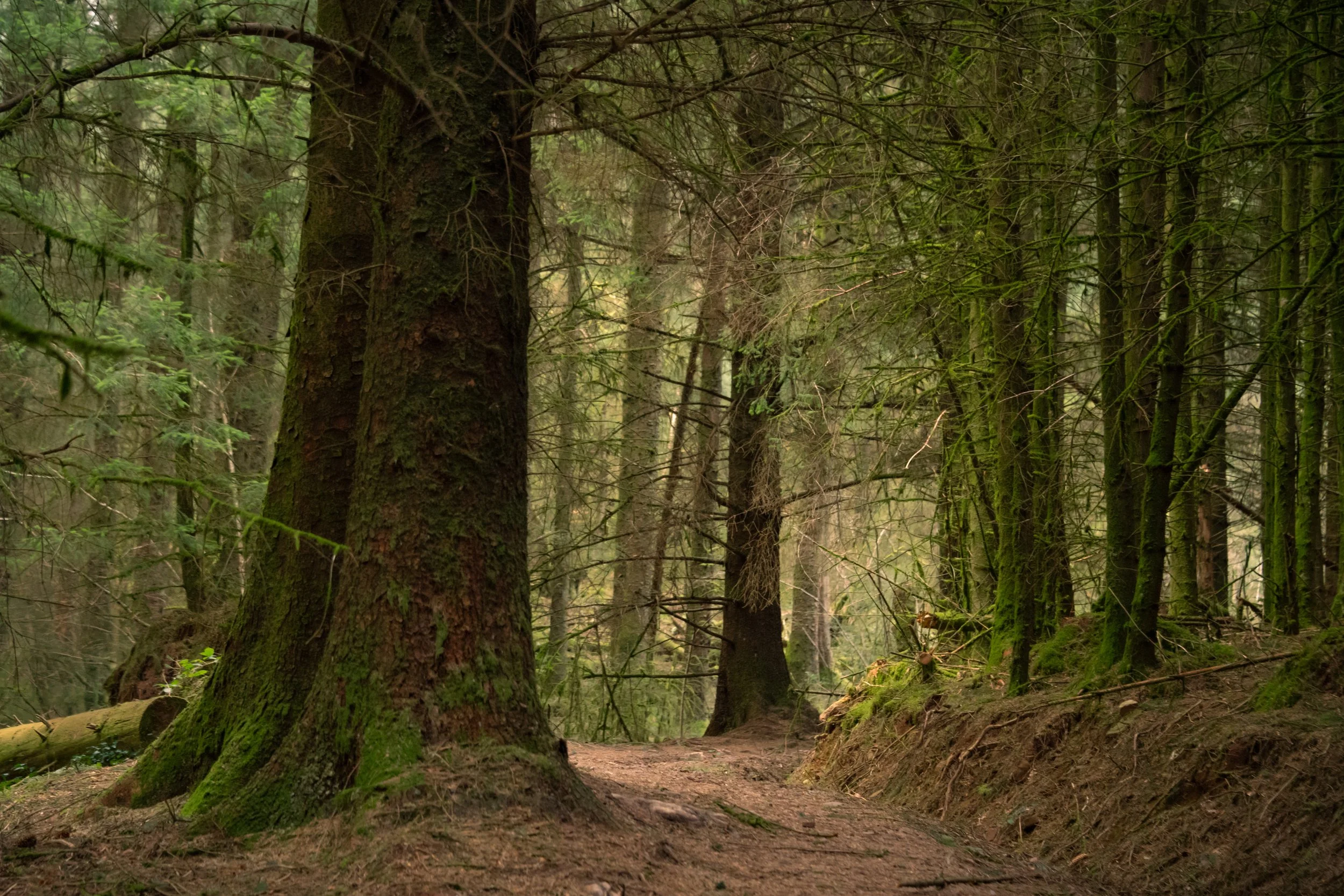 Woodlands at Blaen y Glyn, between Merthyr Tydfil and Abergabvenny. A whole series of lovely waterfalls cascades down the valley here, attracting walkers and photographers alike. But the largely coniferous ancient woodland is also full of opportunities for an image. Here I saw the sunlit path, leading deep into the wood, bright in the distance: “Path to the Light”, I thought. The twin trunks on the left leaned inwards to balance the narrower moss-covered trunks on the right, with a single darker tree in the middle, almost silhouetted against the distant light. With some imagination each tree becomes a character in a story.